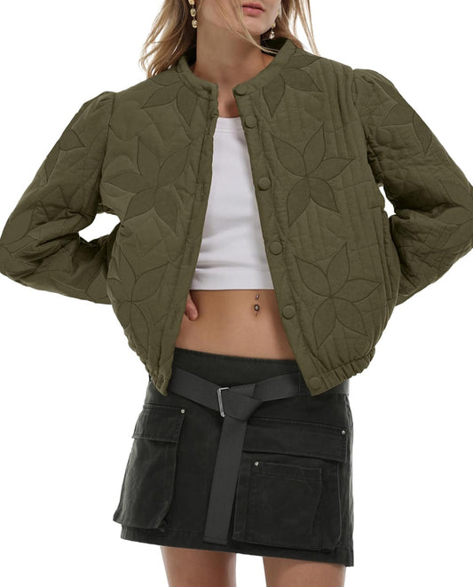 Cotton Quilted Crop Jacket in Olive Green