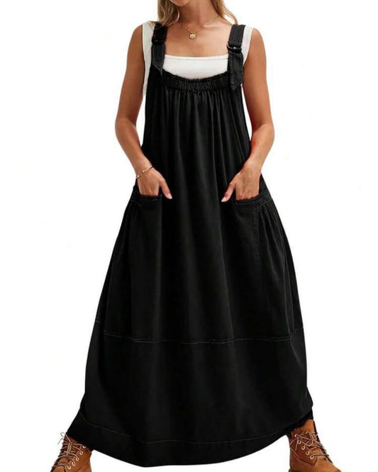 Cotton Overalls Dress , Bohemian Dress in Black