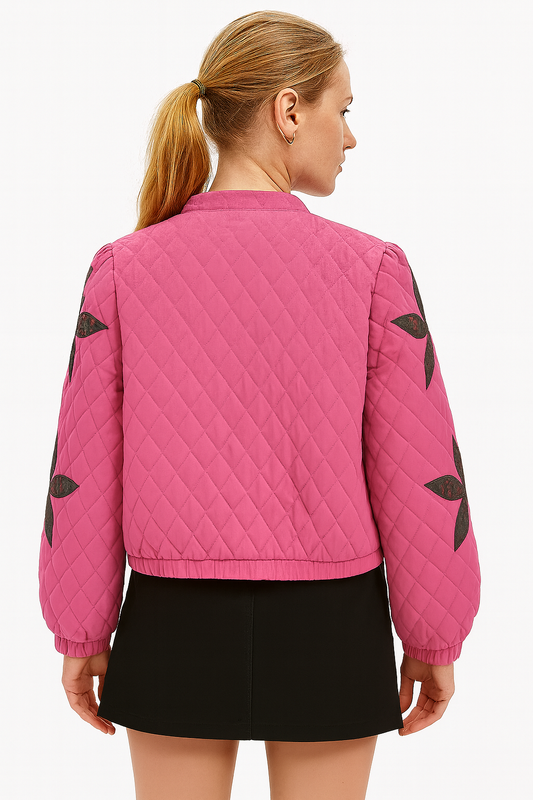 Cotton Quilted Crop Jacket in “Pretty Pink”