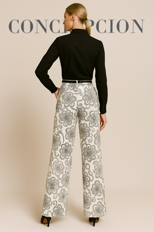DEMSEY Cotton and Linen Embroidered Pants