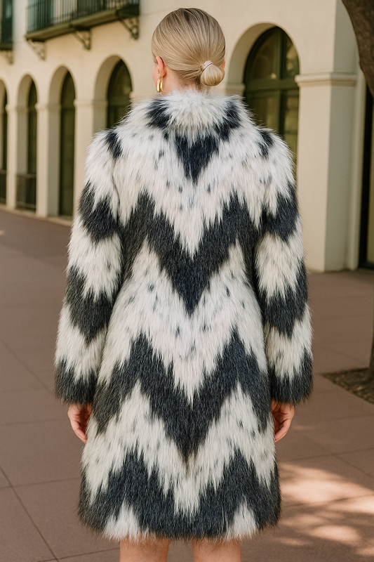 DRESDEN Faux Mongolian Fur Jacket in Blue/White Chevron