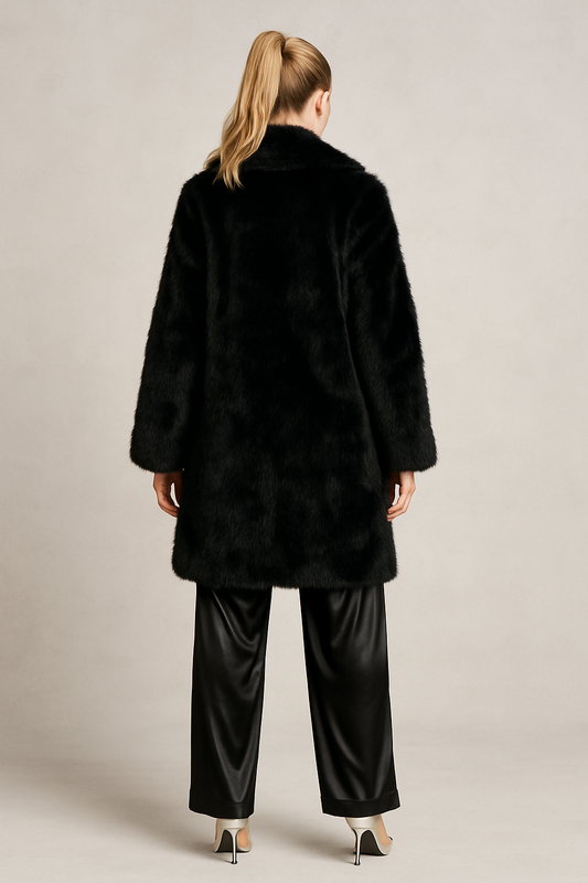 DRESDEN Faux Fox Fur Jacket in Black