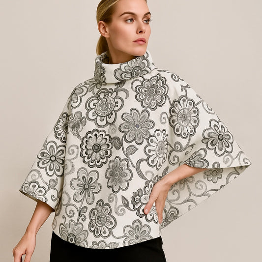 DEMSEY Cotton and Linen Embroidered Cape