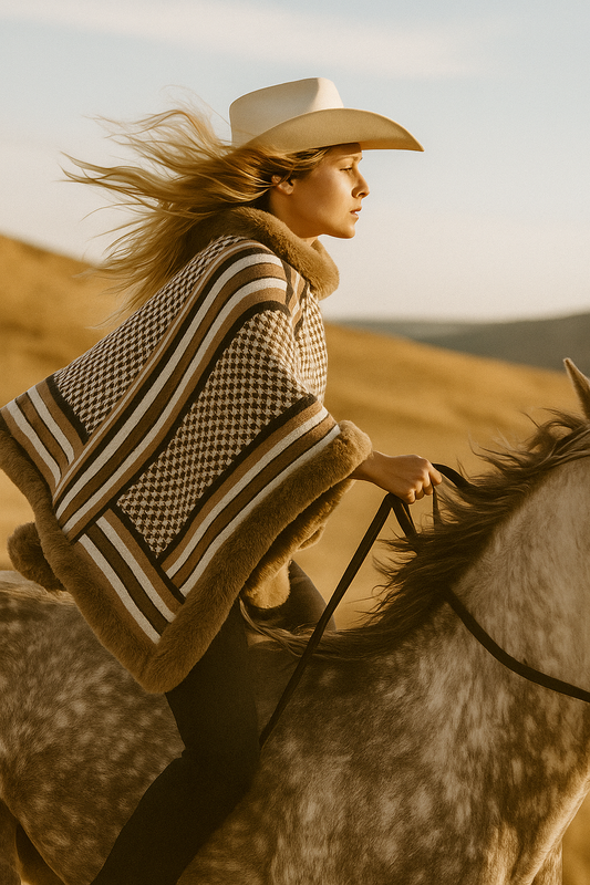 Beige Striped Poncho